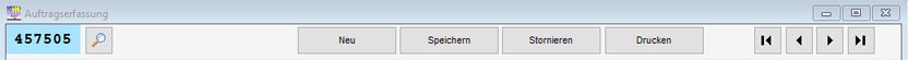 Die Schaltfelder mit den Pfeilsymbolen können zur Navigation genutzt werden (Erster, vorheriger, nächster bzw. letzter Auftrag)