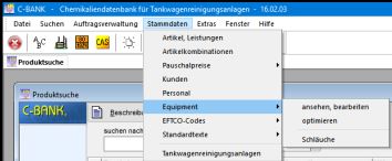 Unter dem Menüpunkt Stammdaten - Equipment werden folgende Funktionen angeboten: