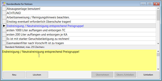 Zu jedem in C‑BANK enthaltenen Produkt kann der Anwender Notizen hinterlegen. Diese können frei eingegeben werden oder aber auch aus einer hinterlegten Auswahlliste ausgefüllt werden. Diese Auswahlliste ist über den Menüpunkt Stammdaten – Standardtexte - Notizen editierbar. Sie kann beliebig erweitert werden.