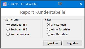 Zum Drucken einer Kundenliste kann die Sortierung und ein Filter gewählt werden.