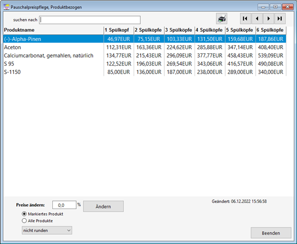 Hier können Pauschalpreise für einzelne oder für alle Produkte mit eingetragenem Pauschalpreis verändert werden.