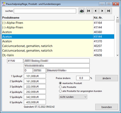 Hier können Pauschalpreise für einzelne oder für alle Produkte mit eingetragenem Pauschalpreis verändert werden.
